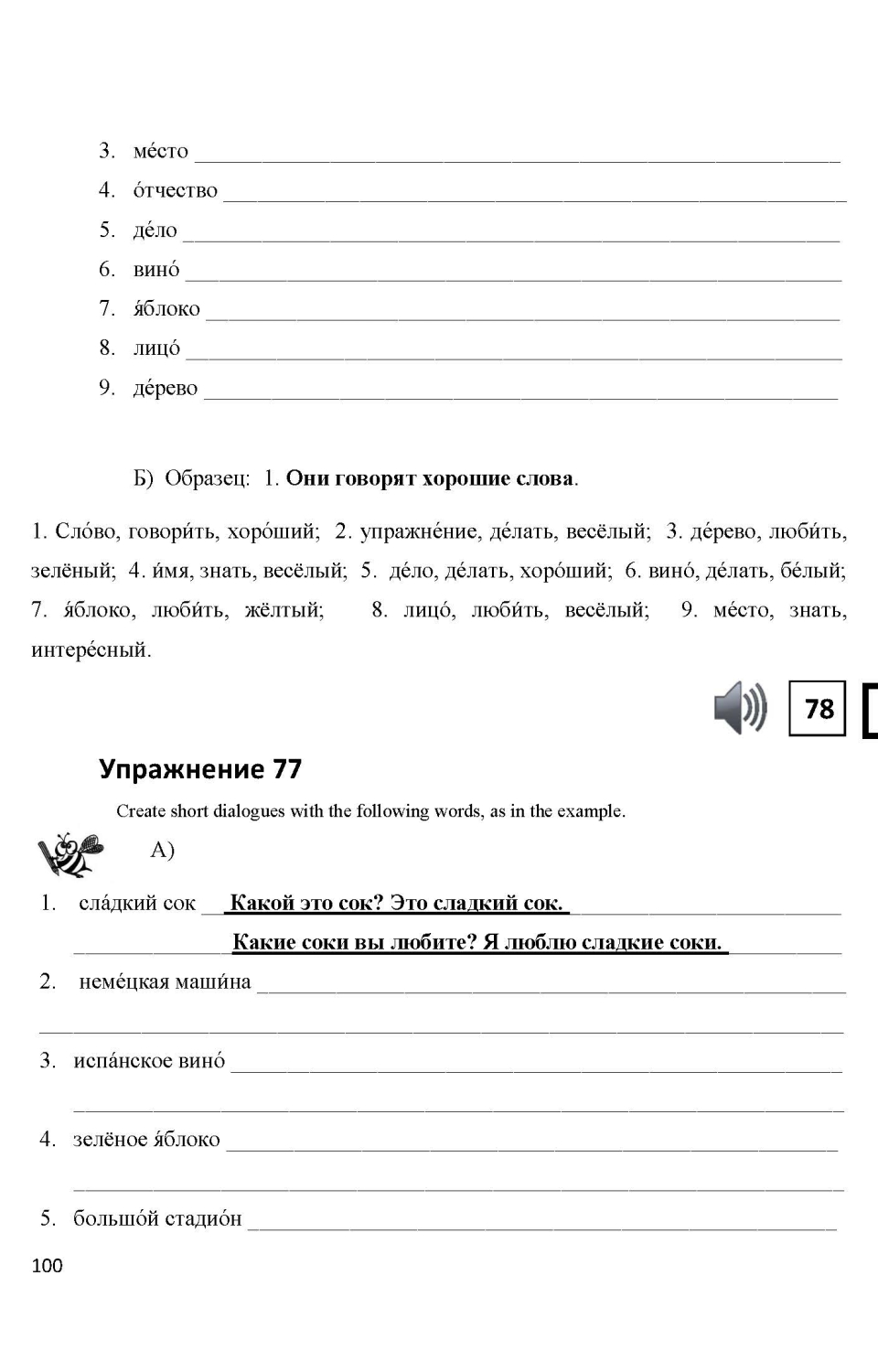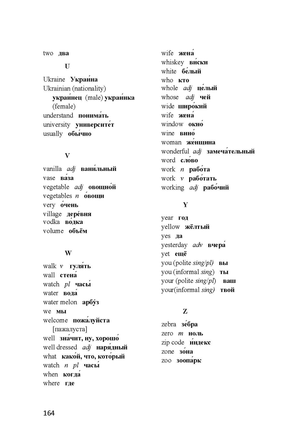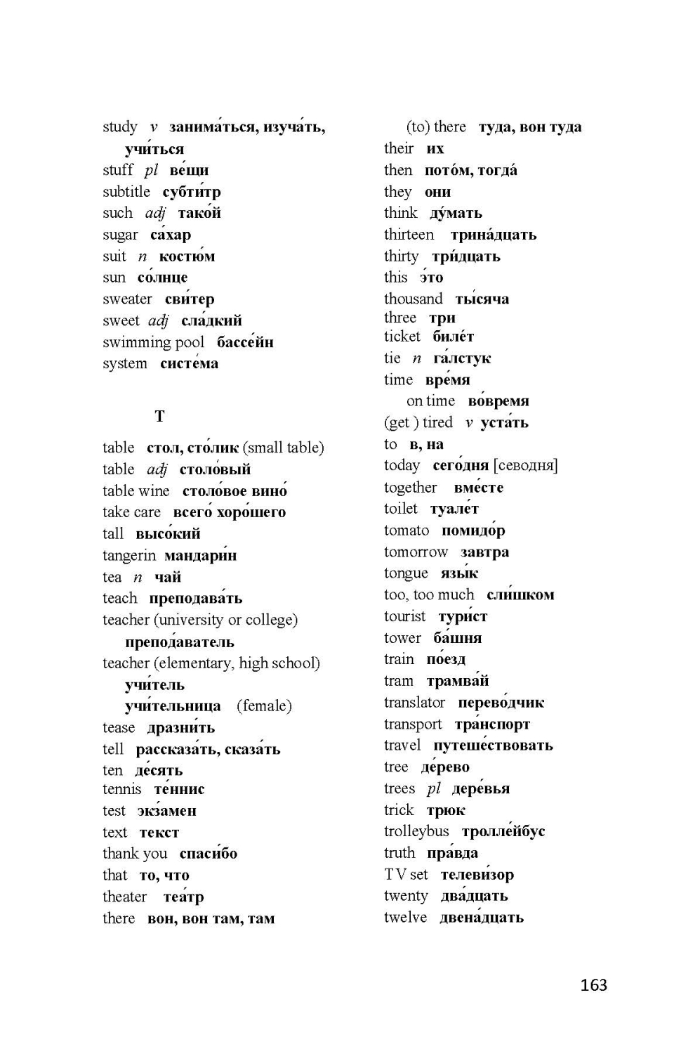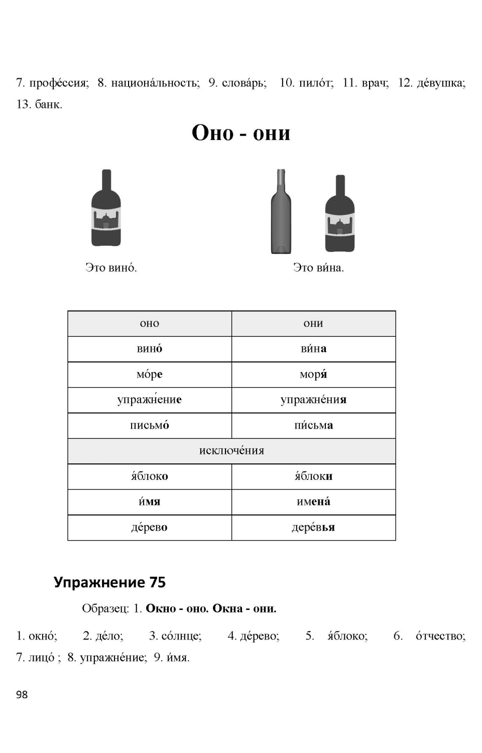 - Vocabulary (colors, family, first name, last name, patronymic, informal names, which name to use and when, professions, calling on the phone, nationalities, I love fruit, I work for the firm, they live in, going to the theater)