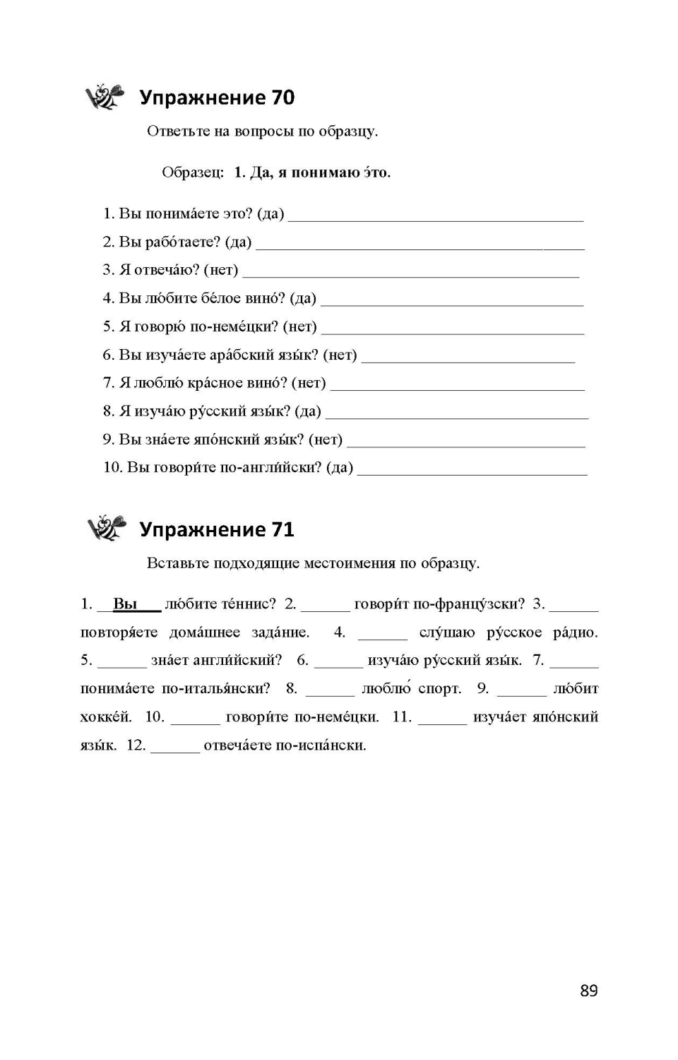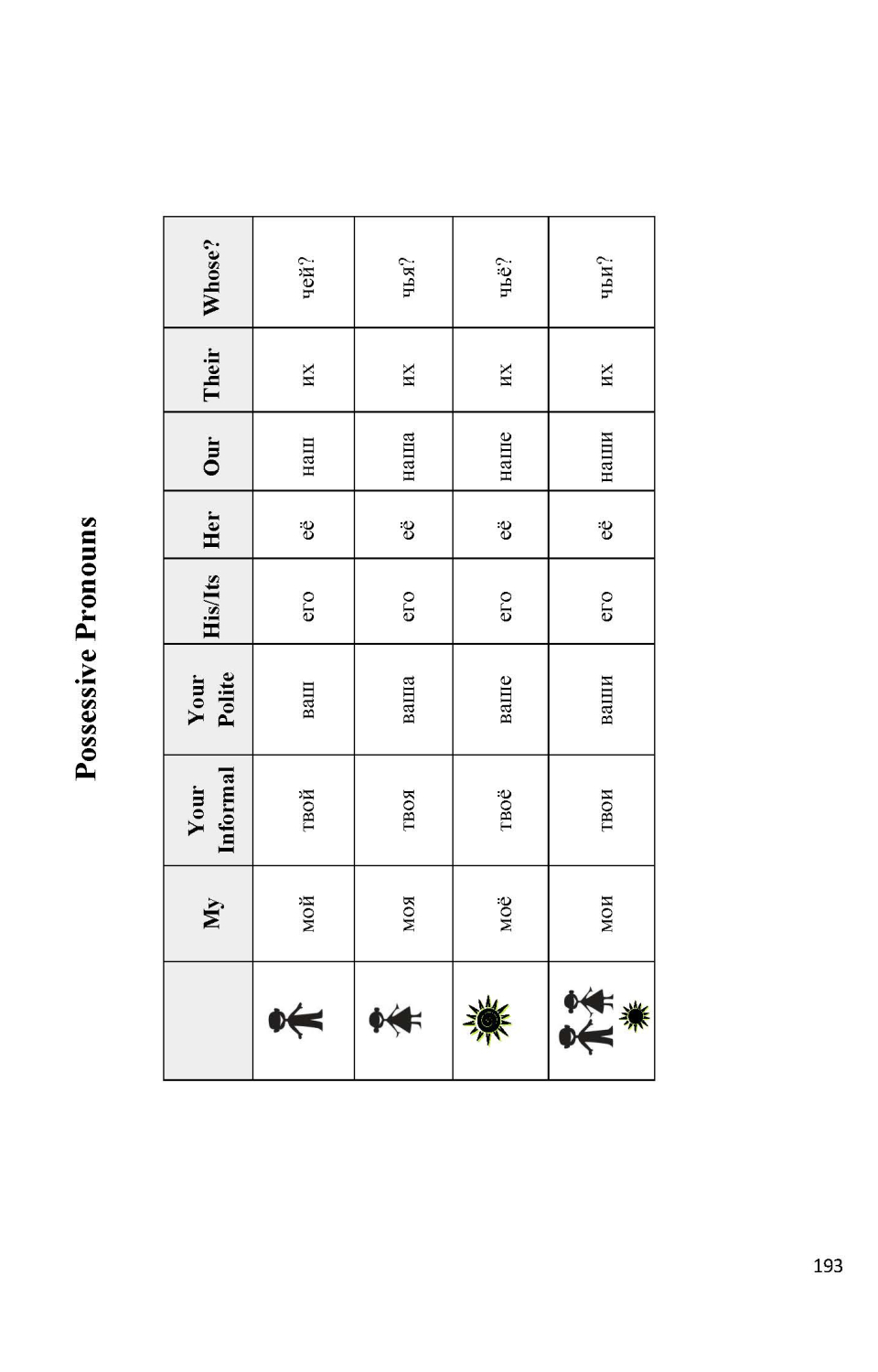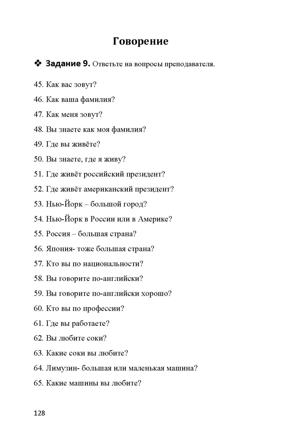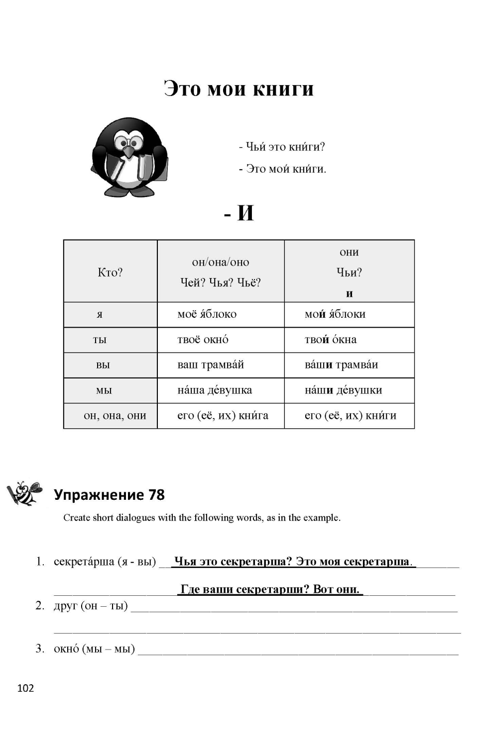 - Grammar (adjectives, what, where, over here/there, what is your profession?, whose, ‘Вы’ or ‘ты’ ?, possessive pronouns, short form adjectives, what is your nationality?, capitalization, verbs, present tense, personal pronouns in the accu