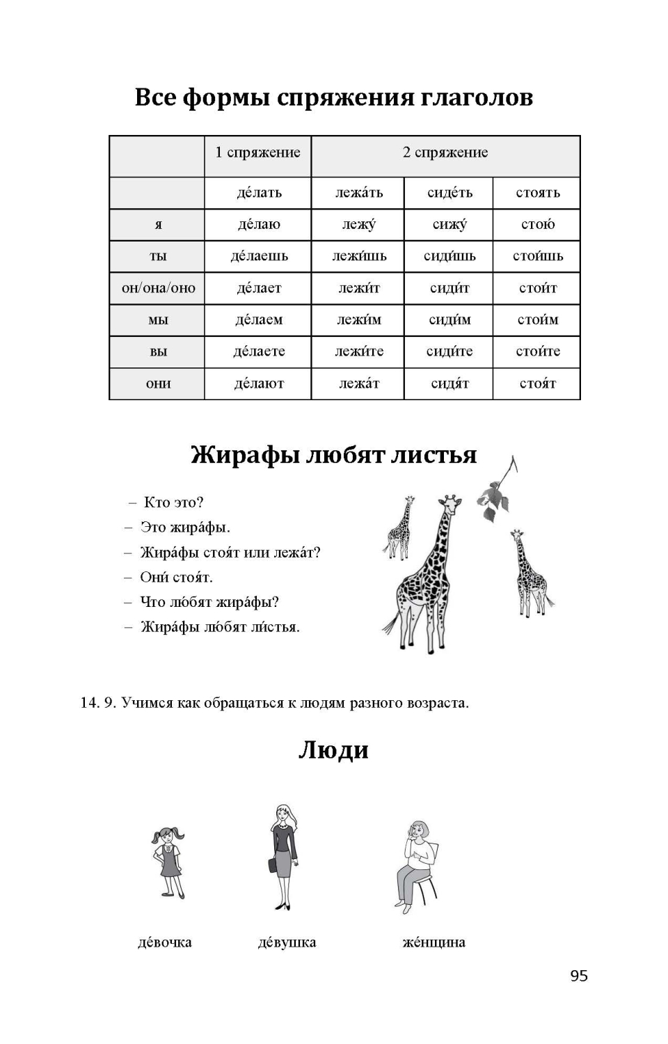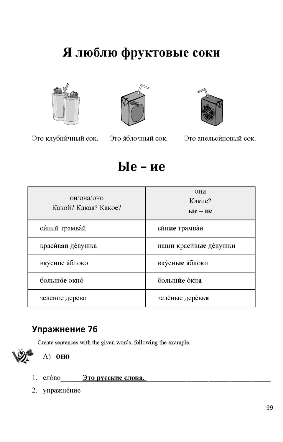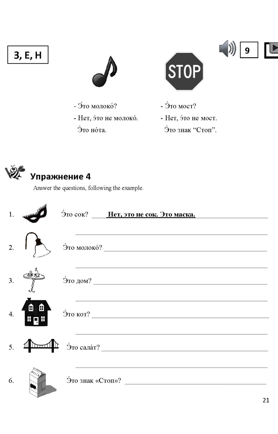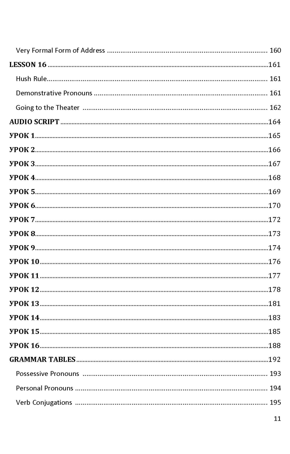 The first 6 lessons teach the students how to read and write in Russian. The Russian Alphabet is introduced in a special order that allows the students to start reading words and sentences from lesson one. The letters are supported by basic vocabulary and grammar structures that allow the student to speak from the very first page: