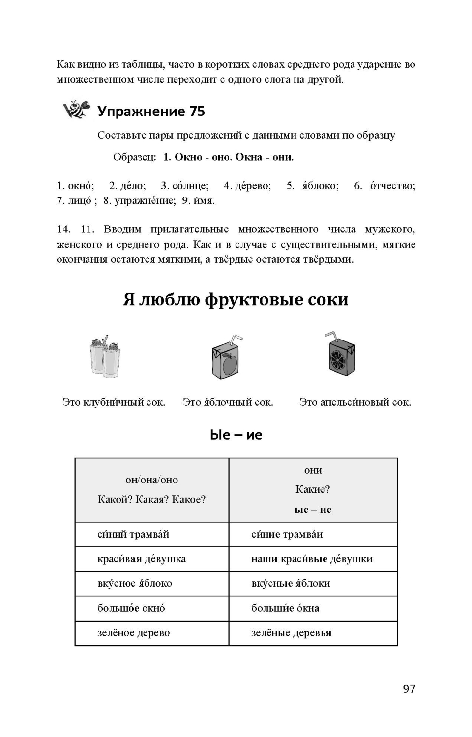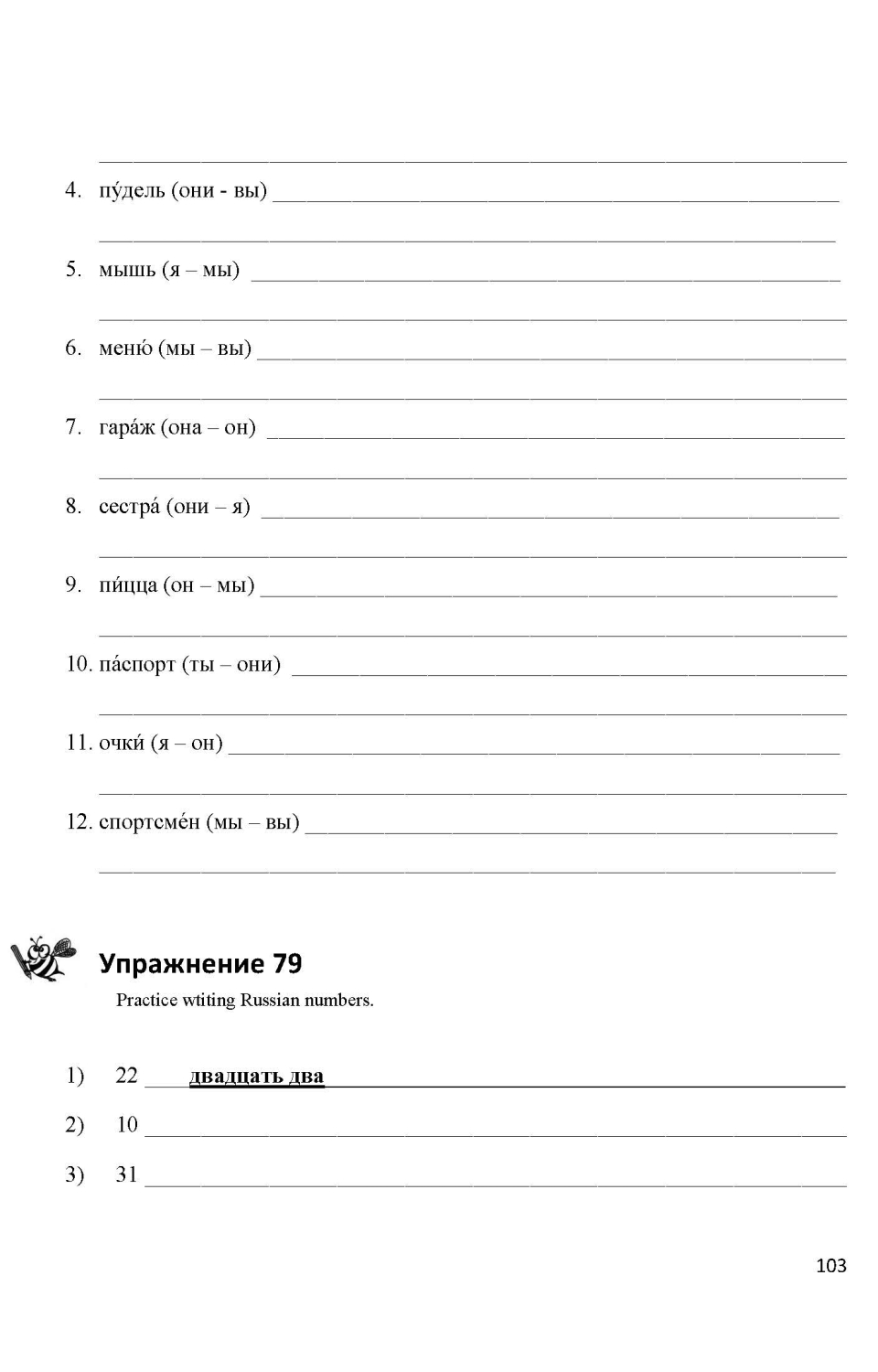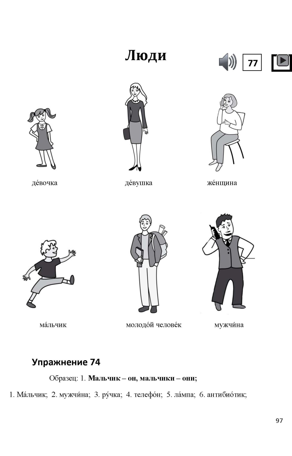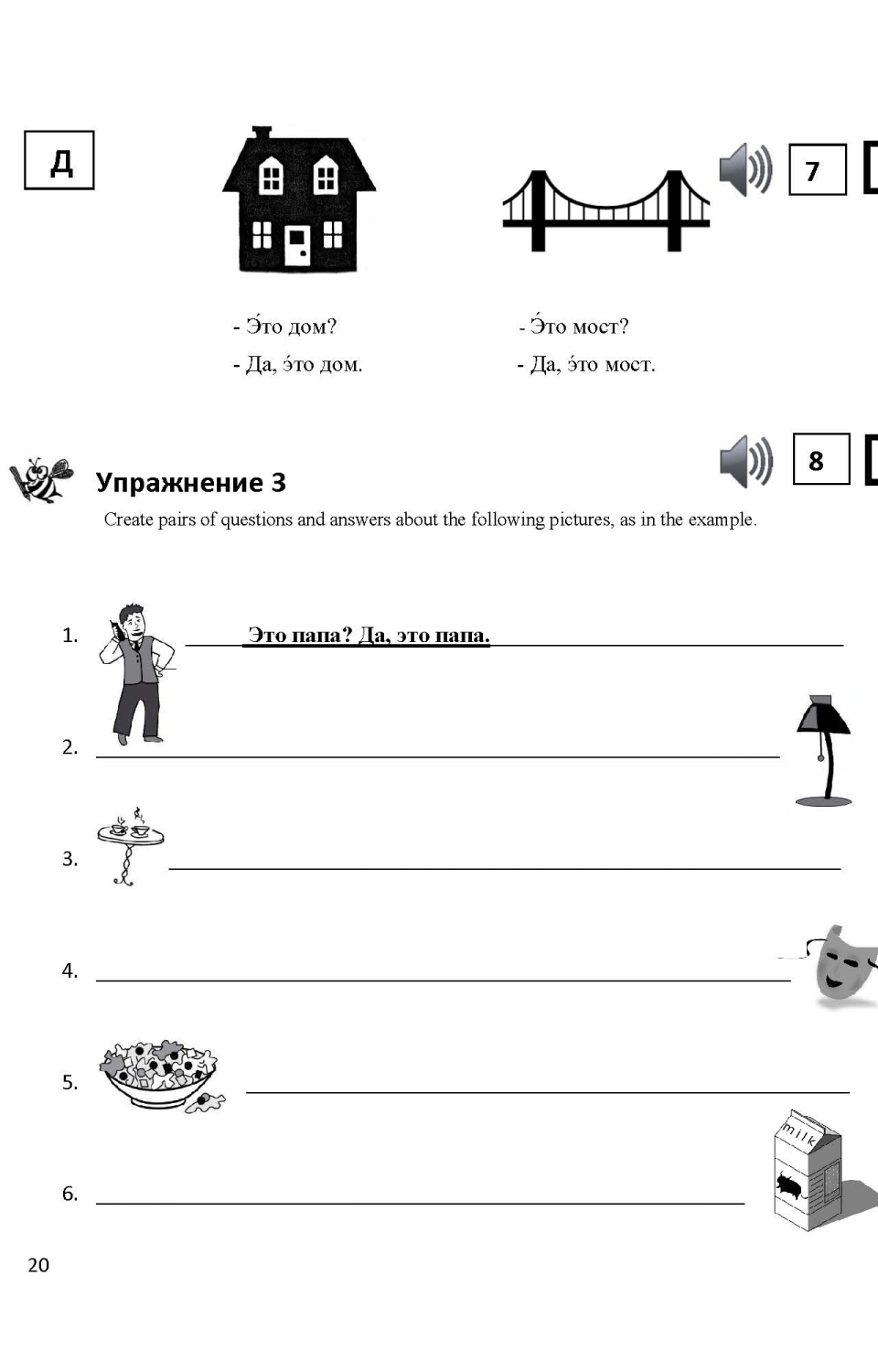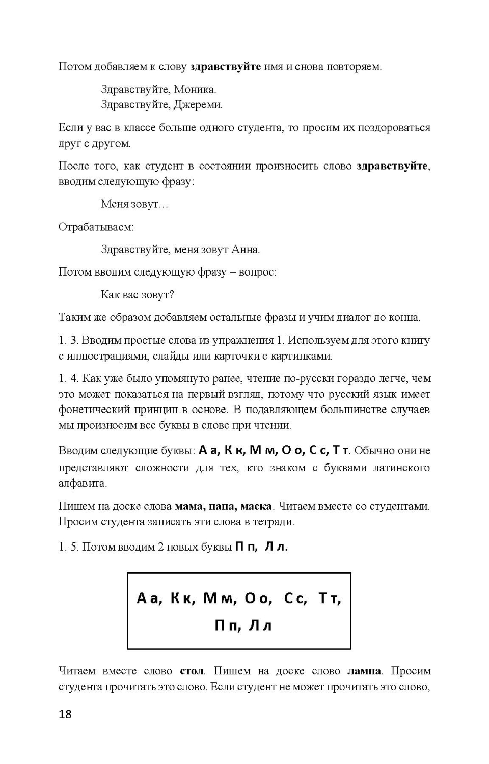 The first 6 lessons teach the students how to read and write in Russian. The Russian Alphabet is introduced in a special order that allows the students to start reading words and sentences from lesson one. The letters are supported by basic vocabulary and grammar structures that allow the student to speak from the very first page: