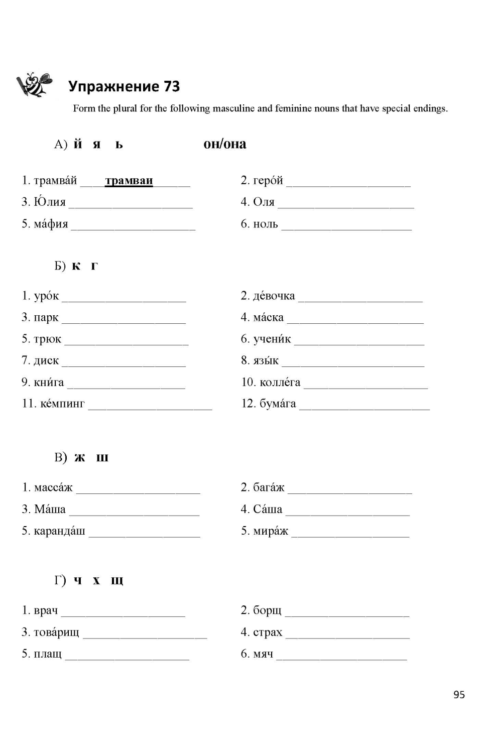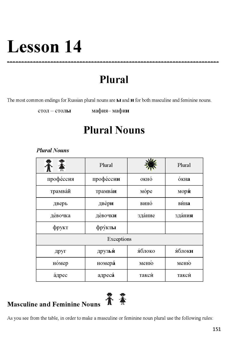 sative, plural nouns, verb conjugation, plural adjectives, plural possessive pronouns, russian case system of nouns, prepositional case, , very formal form of address, demonstrative pronouns)