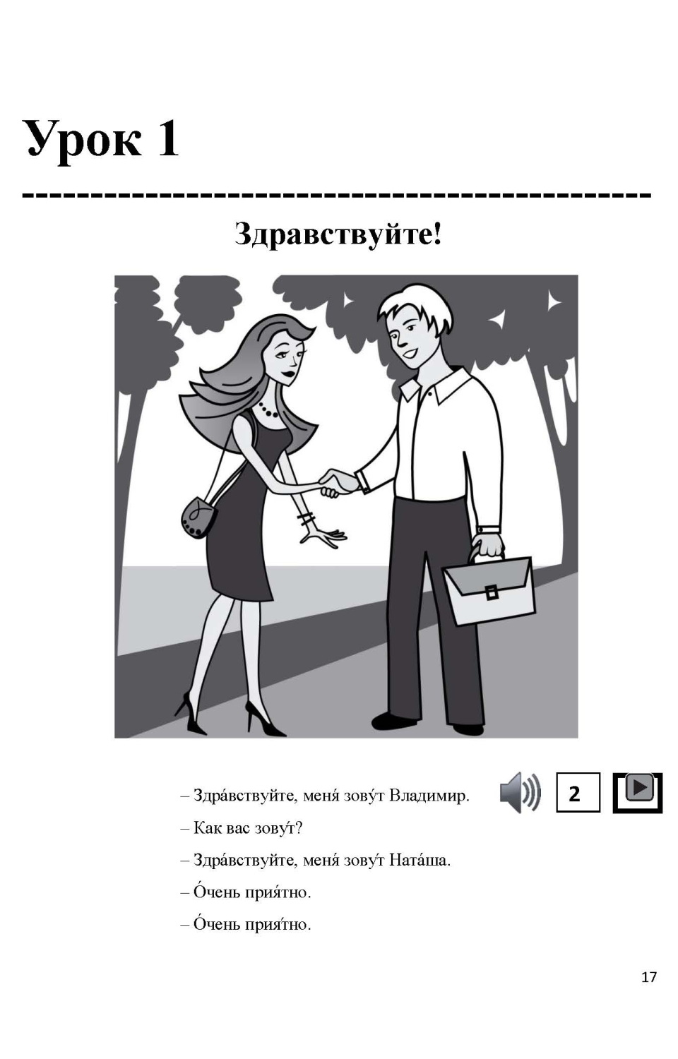 - greetings and introductions, articles, verb “to be”, unstressed “o”, intonation, who/what is this?, or, and, gender of nouns, personal pronouns вы and мы, counting 0-10.